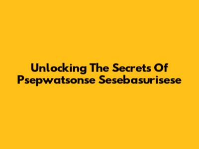 Unlocking The Secrets Of Psepwatsonse Sesebasurisese