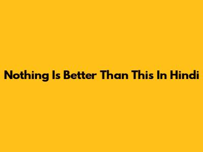 Nothing Is Better Than This In Hindi