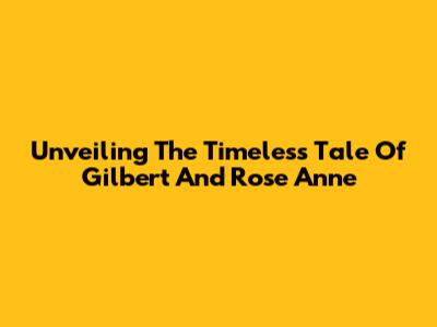 Unveiling The Timeless Tale Of Gilbert And Rose Anne