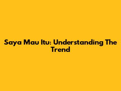 Saya Mau Itu: Understanding The Trend