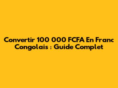 Convertir 100 000 FCFA En Franc Congolais : Guide Complet