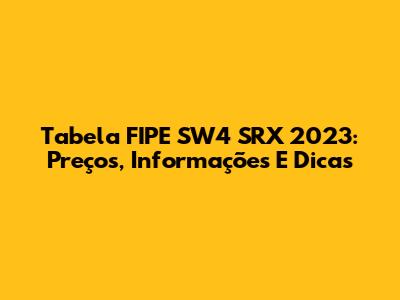 Tabela FIPE SW4 SRX 2023: Preços, Informações E Dicas