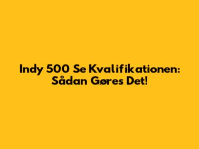 Indy 500 Se Kvalifikationen: Sådan Gøres Det!