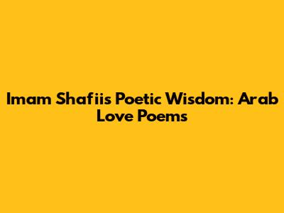 Imam Shafi'i's Poetic Wisdom: Arab Love Poems