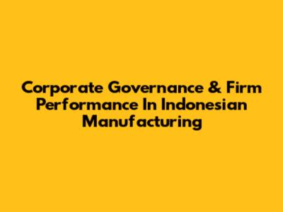 Corporate Governance & Firm Performance In Indonesian Manufacturing