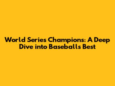 The Thrill of Victory: Unpacking the World Series