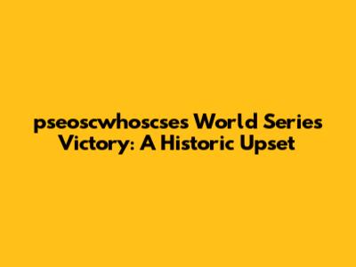Hey guys, let's dive into the absolutely wild story of how pseoscwhoscse clinched the World Series title! This wasn't just a win; it was a monumental upset that'll be talked about for ages. Forget the usual suspects; pseoscwhoscse came out of nowhere and dominated. Nobody saw it coming, making their victory all the more thrilling. This team, once an underdog, showed everyone that with grit, strategy, and a whole lot of heart, anything is possible. The journey to the top was filled with nail-biting games, strategic masterstrokes, and outstanding individual performances that turned the tide in their favor. This victory isn't just a win for the team; it's an inspiration, proving that with dedication and belief, David can indeed conquer Goliath. It’s a narrative etched in the annals of baseball history, a reminder that the unexpected can indeed become the unforgettable. Think about the sheer determination it took for pseoscwhoscse to overcome the challenges they faced. From grueling training sessions to overcoming formidable opponents, their path to glory was paved with resilience and unwavering commitment. They transformed setbacks into stepping stones, learning from every defeat and emerging stronger each time. The team's camaraderie was palpable, a band of brothers united by a common goal. It was this unity that allowed them to navigate the pressures of the playoffs and ultimately secure their place in baseball history. Their triumph is a testament to the power of teamwork and the belief that anything is achievable when individuals come together with a shared vision.