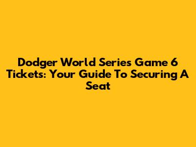 Dodger World Series Game 6 Tickets: Your Guide To Securing A Seat