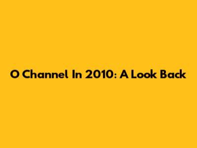 O Channel In 2010: A Look Back