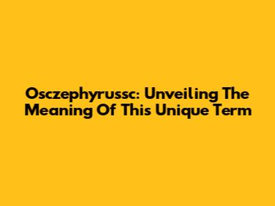 Osczephyrussc: Unveiling The Meaning Of This Unique Term