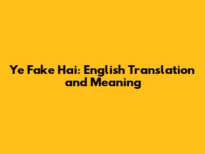 Ye Fake Hai: English Translation And Meaning