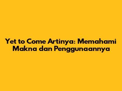 Yet to Come artinya adalah frasa bahasa Inggris yang sering kita jumpai dalam percakapan sehari-hari, lagu, film, atau bahkan dalam penulisan formal. Tetapi, apa sebenarnya arti dari frasa ini? Bagaimana cara menggunakannya dengan tepat? Mari kita bedah bersama-sama!