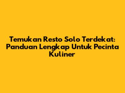 Temukan Resto Solo Terdekat: Panduan Lengkap Untuk Pecinta Kuliner