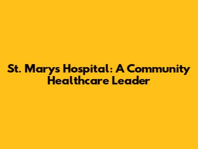 St. Mary's Hospital: A Community Healthcare Leader