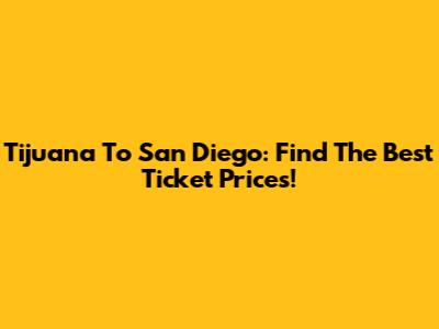 Tijuana To San Diego: Find The Best Ticket Prices!