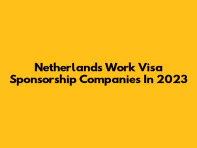 Netherlands Work Visa Sponsorship Companies In 2023