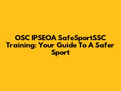 OSC IPSEOA SafeSportSSC Training: Your Guide To A Safer Sport