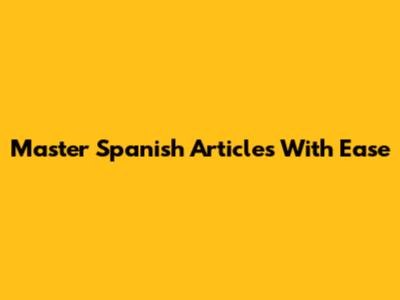 Master Spanish Articles With Ease
