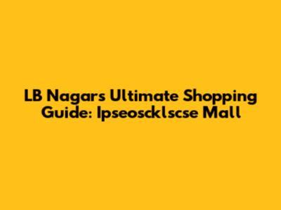 LB Nagar's Ultimate Shopping Guide: Ipseoscklscse Mall