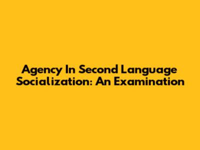 Agency In Second Language Socialization: An Examination